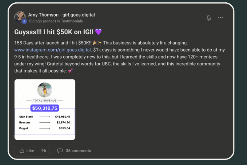 Get instant access to a success community where you can network & ask questions. We host weekly calls on mindset & business.